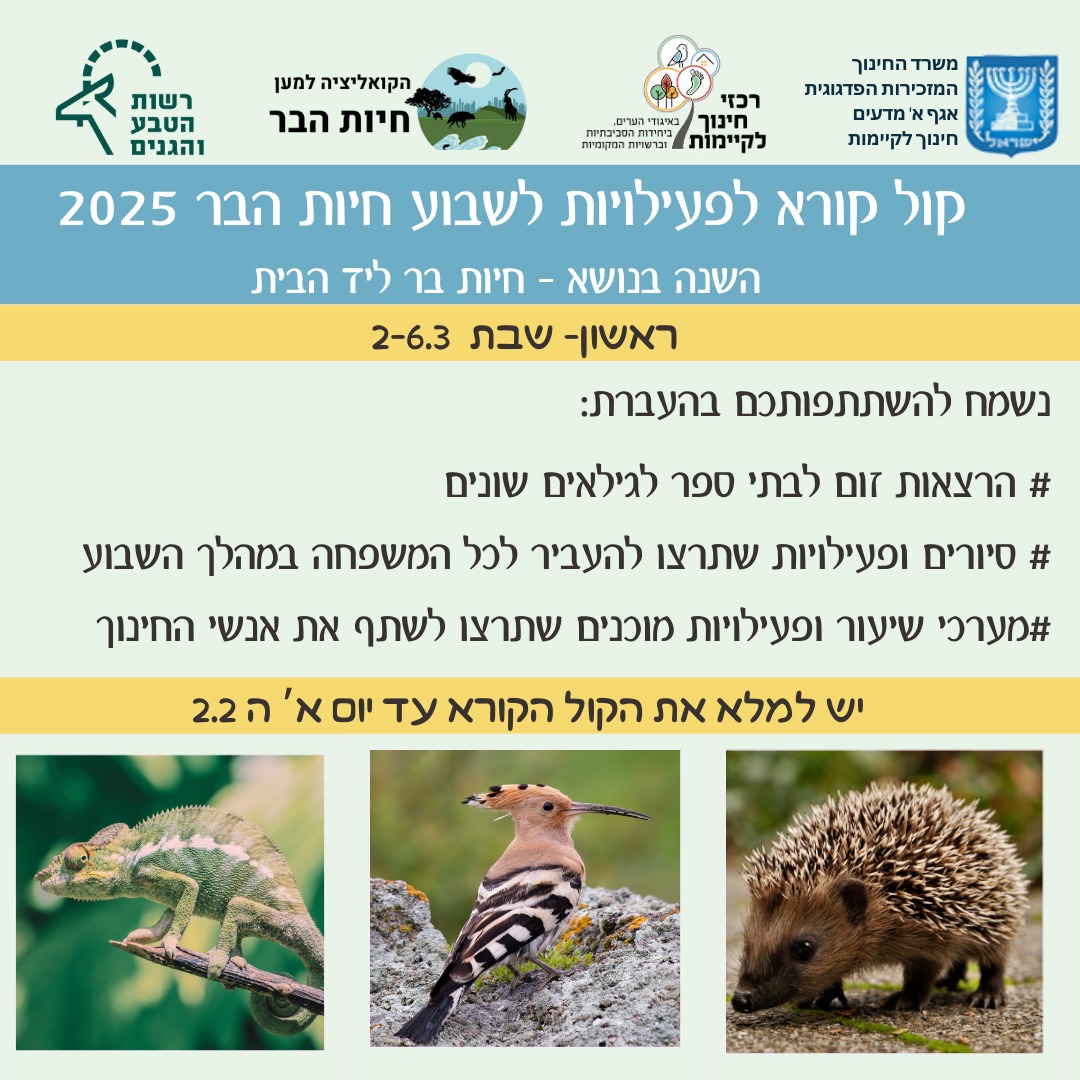קול קורא להעברת פעילויות בשבוע חיות הבר 2025